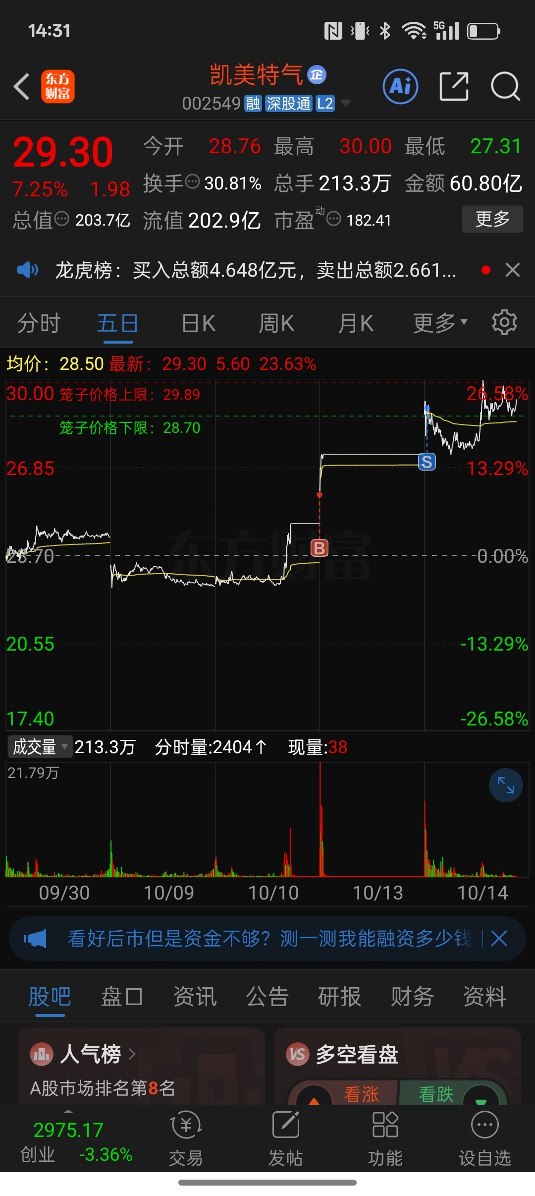 $凯美特气(SZ002549)$ 大哥,我感觉我胆子小,你还是别拉停了