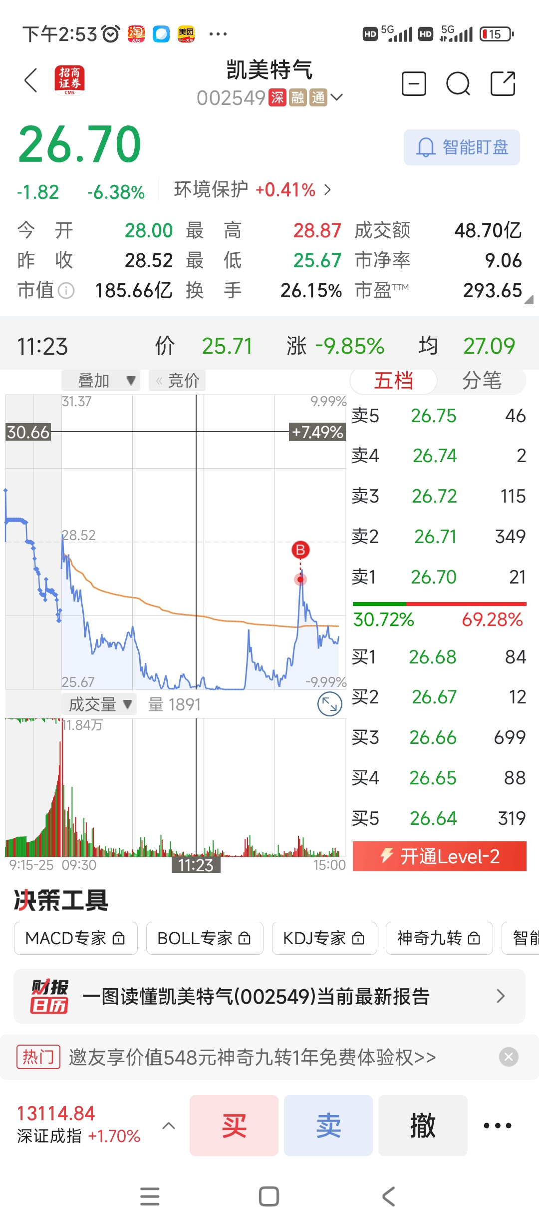 $凯美特气(SZ002549)$ 对不起大家了,被我买崩了