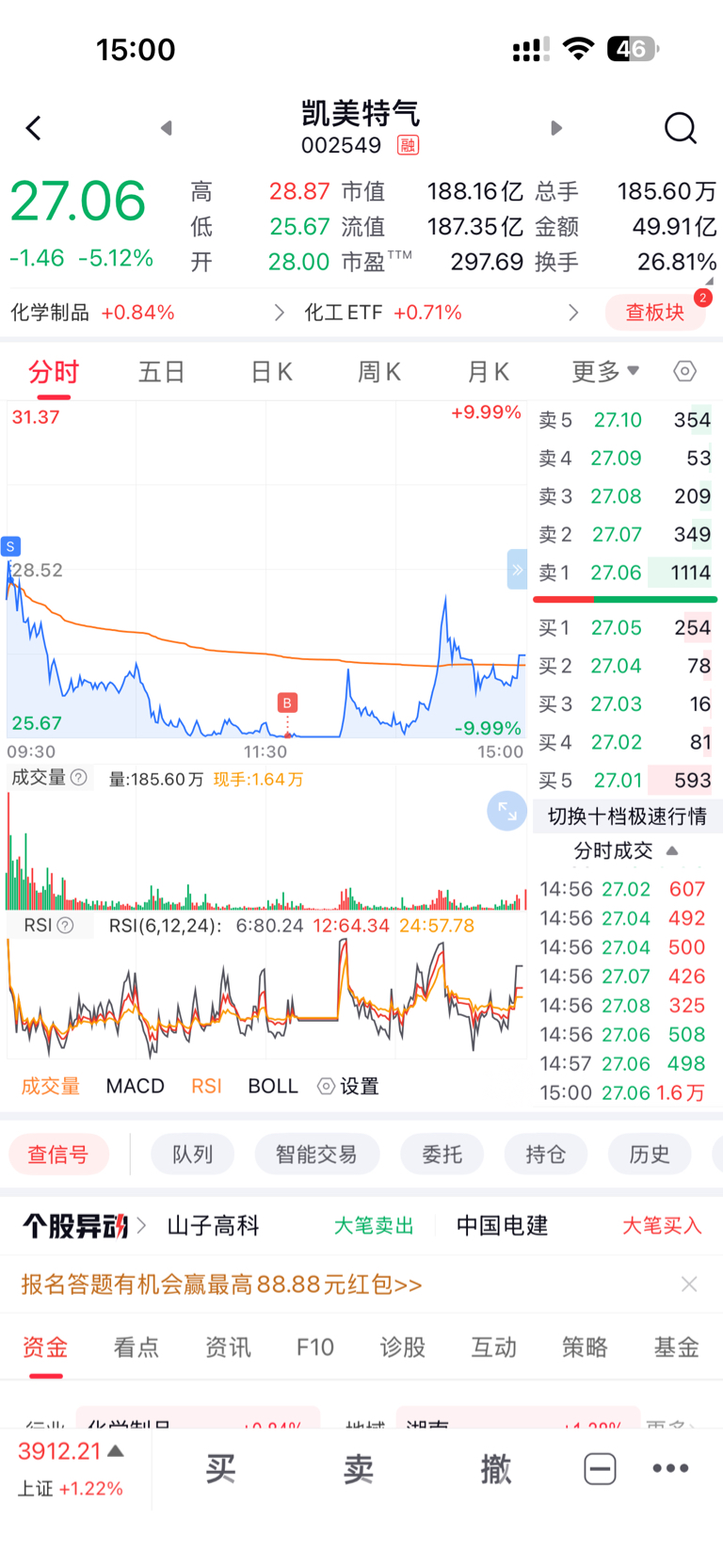 $凯美特气(SZ002549)$ 明天给个机会,让我平安出来好吗