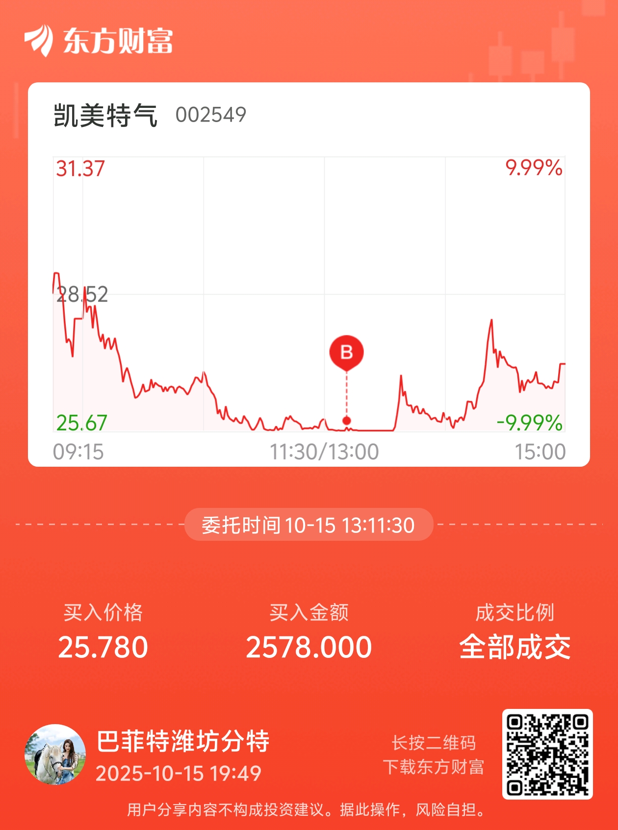 温馨提示: 1.根据《证券法》规定,禁止编造、传播虚假信息或者误导性信息,扰乱证券市场;2.用户在本社区发表的所有资料、言论等仅代表个人观点,与本网站立场无关,不对您构成任何投资建议。用户应基于自己的独立判断,自行决定证券投资并承担相应风险。《东方财富社区管理规定》