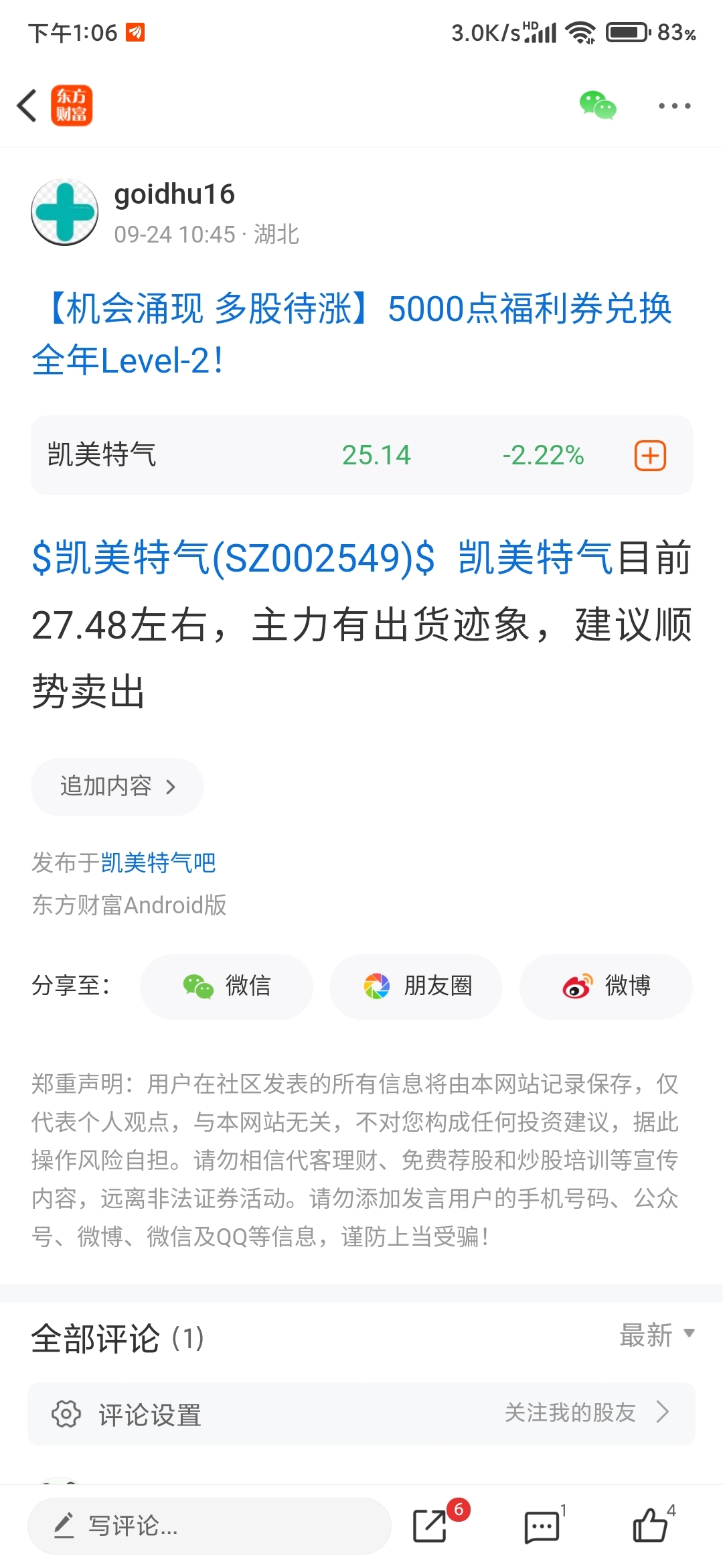 温馨提示: 1.根据《证券法》规定,禁止编造、传播虚假信息或者误导性信息,扰乱证券市场;2.用户在本社区发表的所有资料、言论等仅代表个人观点,与本网站立场无关,不对您构成任何投资建议。用户应基于自己的独立判断,自行决定证券投资并承担相应风险。《东方财富社区管理规定》