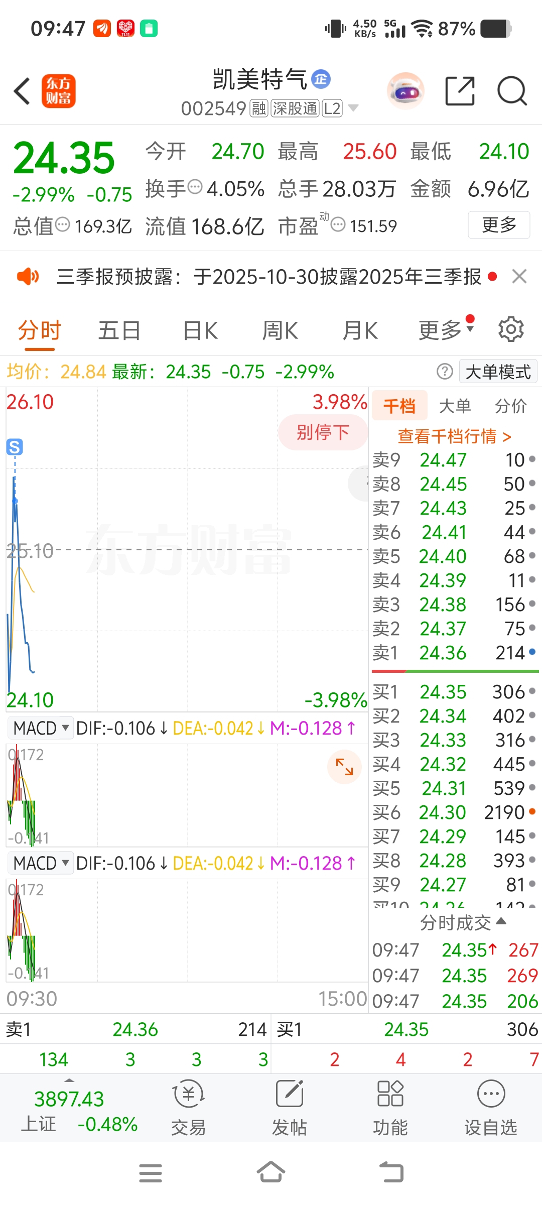 $凯美特气(SZ002549)$ 赚1.5个点就跑 现在股市全都这样!