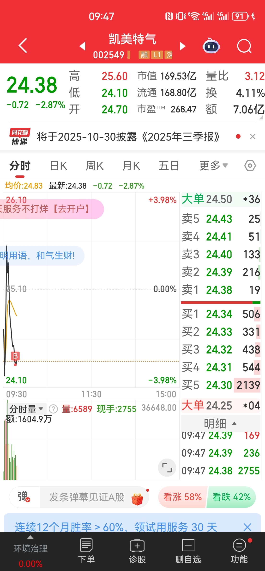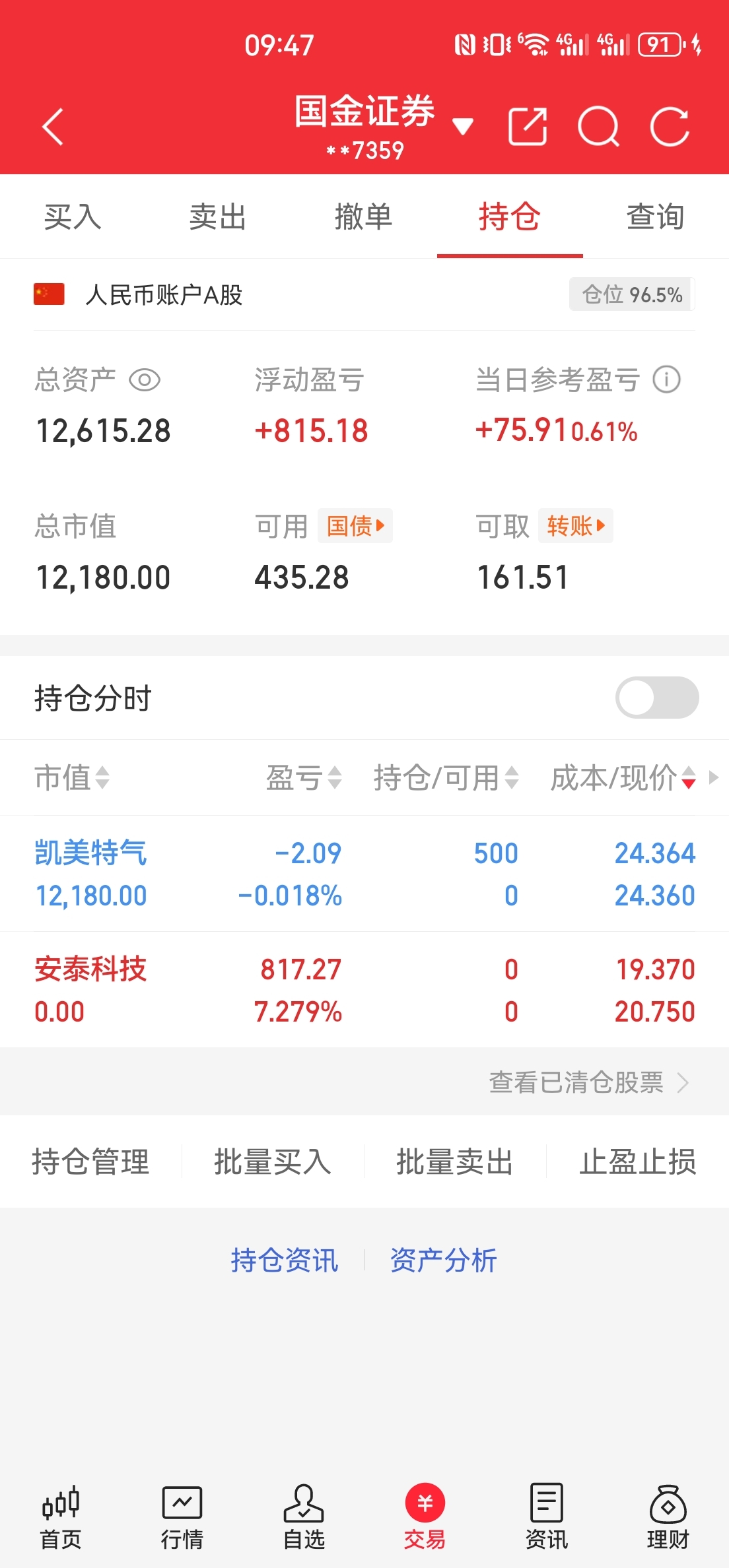 一万到一百万第二天,安泰科技微红走了,-3买入凯美特气