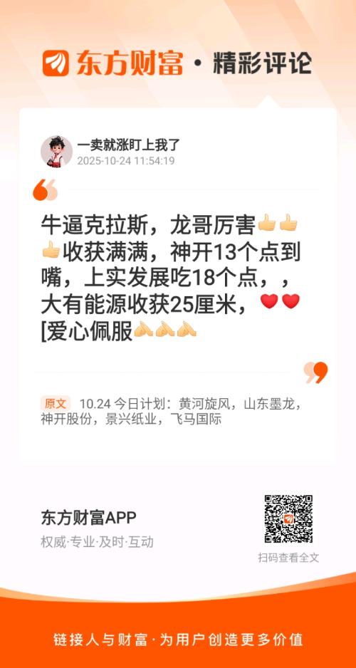 收获满满,神开13个点到嘴,上实发展吃18个点,,大有能源收获25厘米,