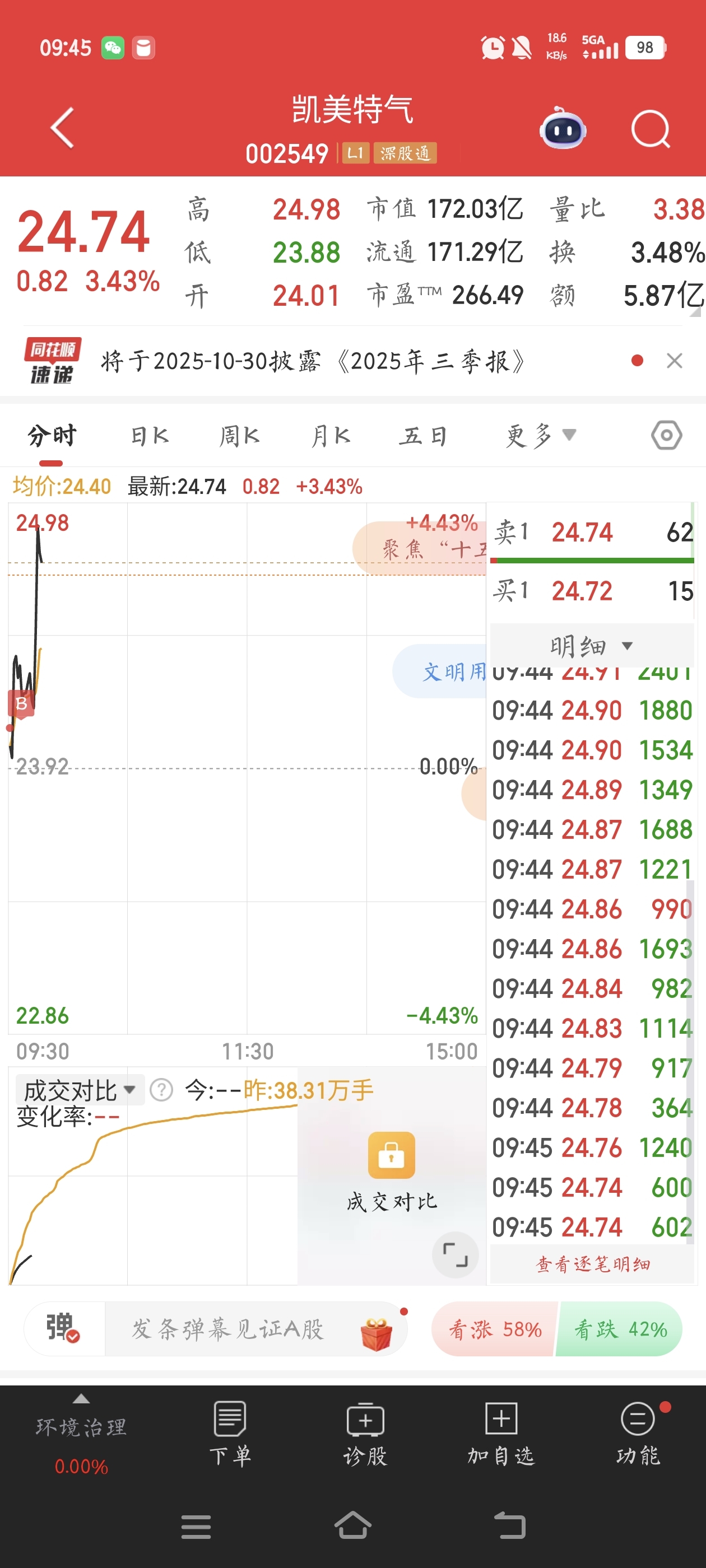 $凯美特气(SZ002549)$ 人气上来了,上周梭哈了1万股