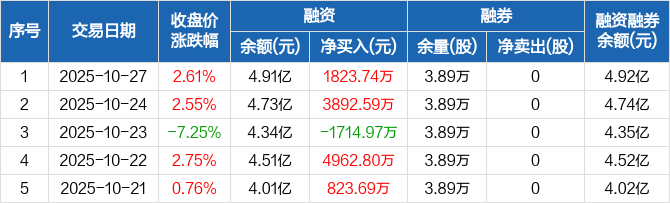 凯美特气:融资净买入1823.74万元,融资余额4.91亿元(10-27)