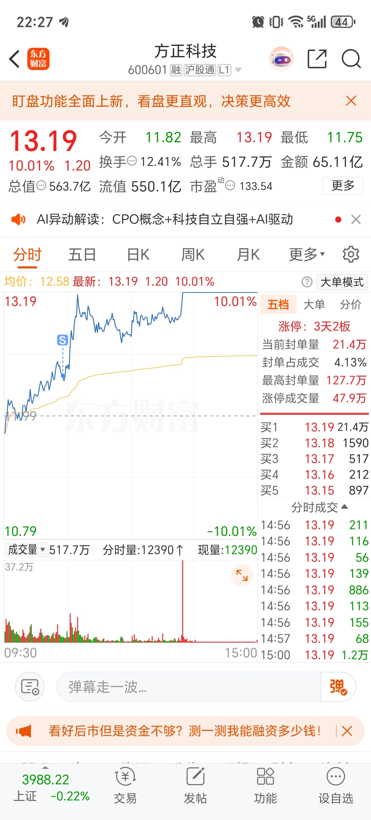 昨天首开卖飞,涨停了,听见方正卖飞涨停了,明天凯美我卖了,真是服了我自己