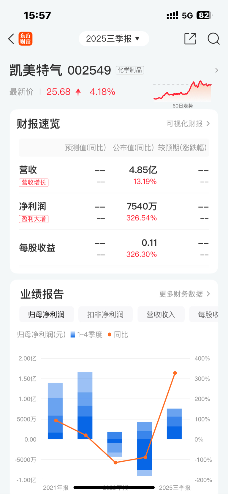 $凯美特气(SZ002549)$ 这三季报业绩真亮眼