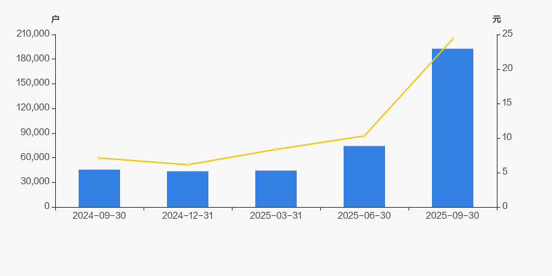 自2024年12月31日以来,公司股东户数连续3期上涨,截至目前增幅为343.21%。2024年12月31日至2025年9月30日区间股价上涨297.06%。
