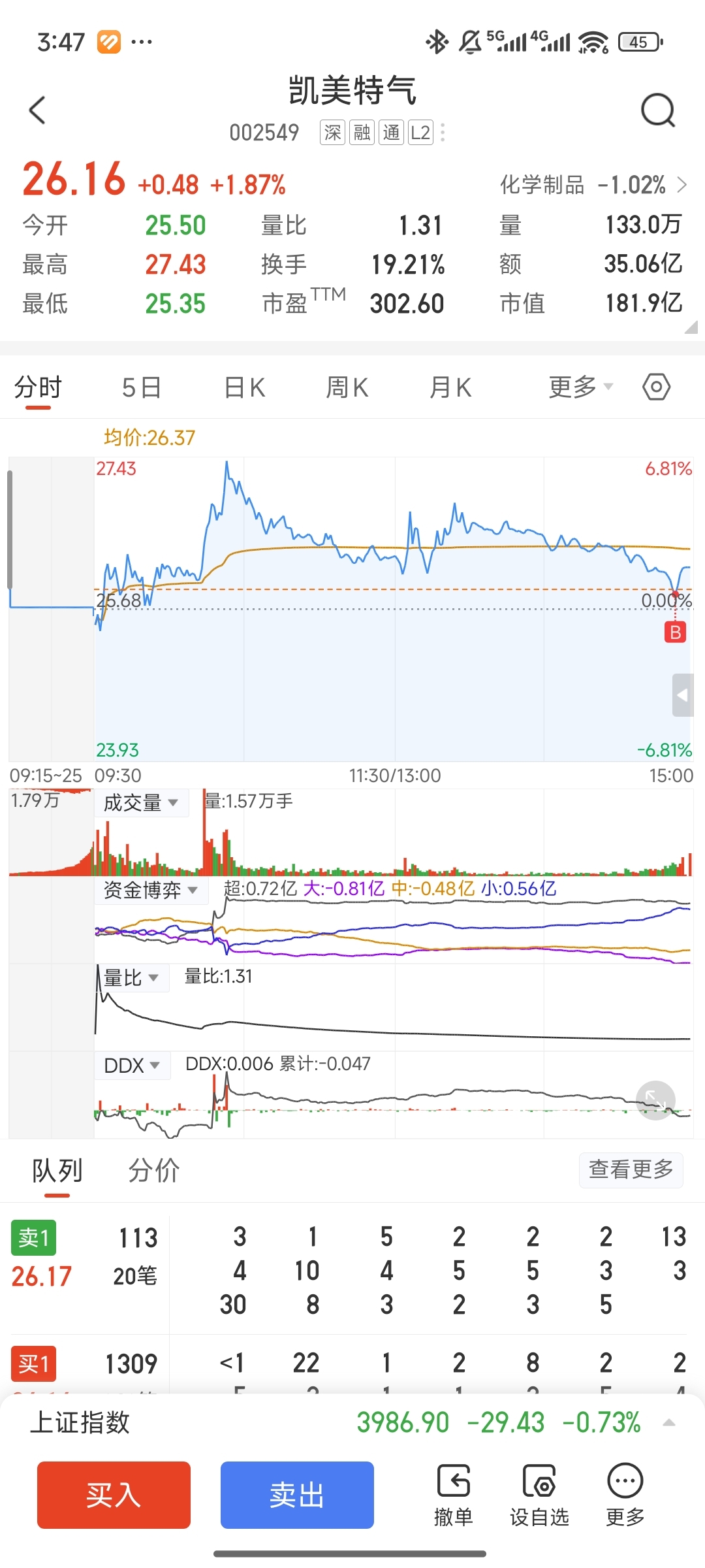 $凯美特气(SZ002549)$ 25.9上车,明天有肉吃吗