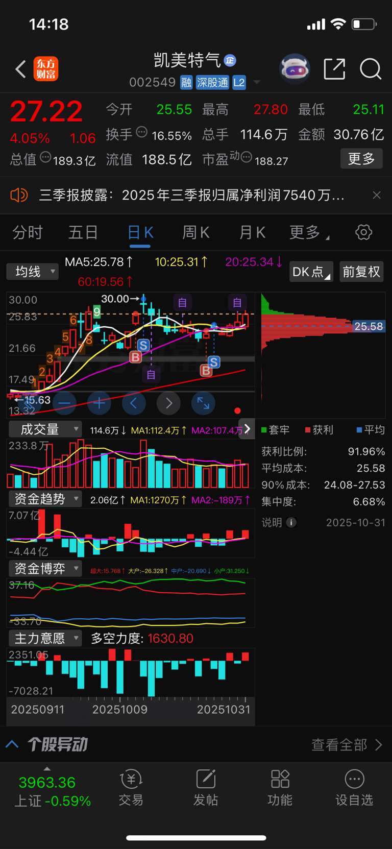 $凯美特气(SZ002549)$ 不知不觉有15个点了