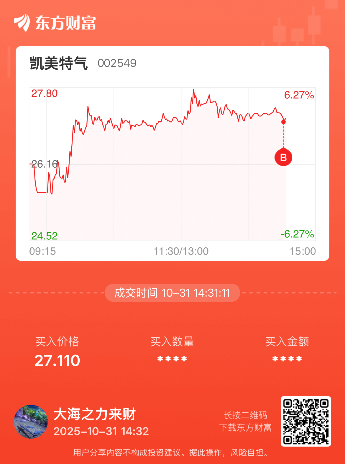 温馨提示: 1.根据《证券法》规定,禁止编造、传播虚假信息或者误导性信息,扰乱证券市场;2.用户在本社区发表的所有资料、言论等仅代表个人观点,与本网站立场无关,不对您构成任何投资建议。用户应基于自己的独立判断,自行决定证券投资并承担相应风险。《东方财富社区管理规定》