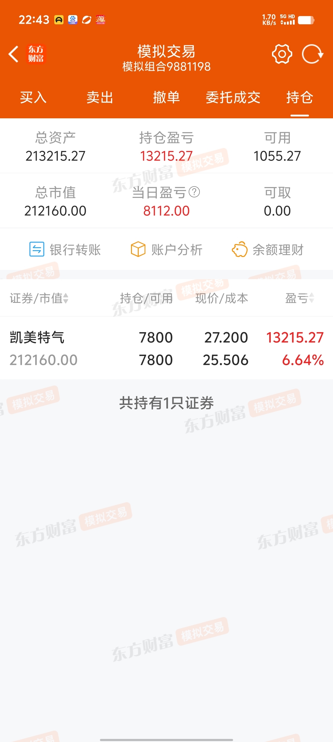 $凯美特气(SZ002549)$ 为什么模拟盘吃肉,实盘吃面