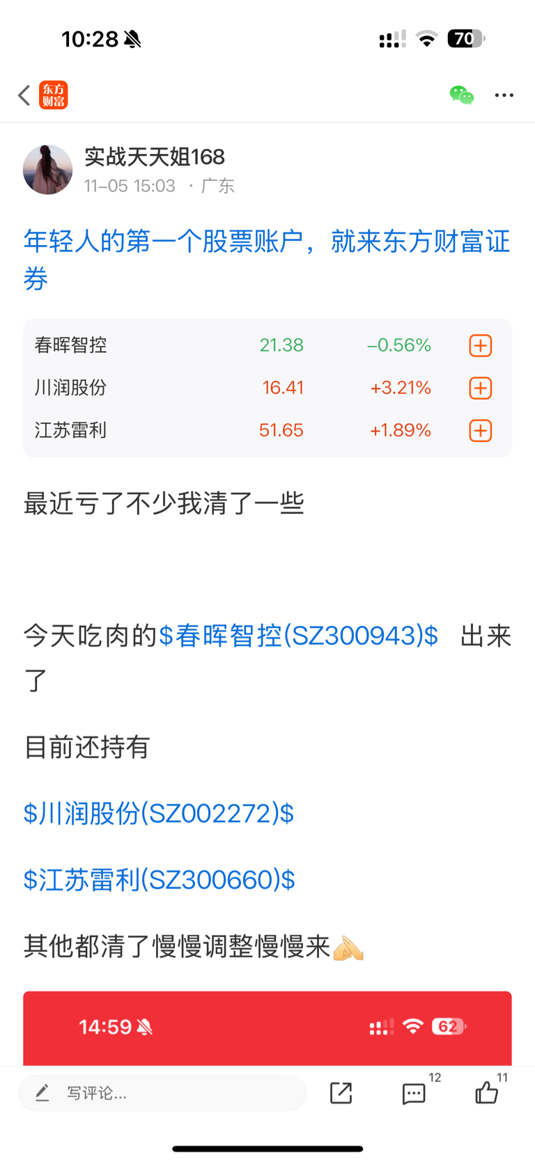 郑重声明:用户在财富号/股吧/博客等社区发表的所有信息(包括但不限于文字、视频、音频、数据及图表)仅代表个人观点,与本网站立场无关,不对您构成任何投资建议,据此操作风险自担。请勿相信代客理财、免费荐股和炒股培训等宣传内容,远离非法证券活动。请勿添加发言用户的手机号码、公众号、微博、微信及QQ等信息,谨防上当受骗!
