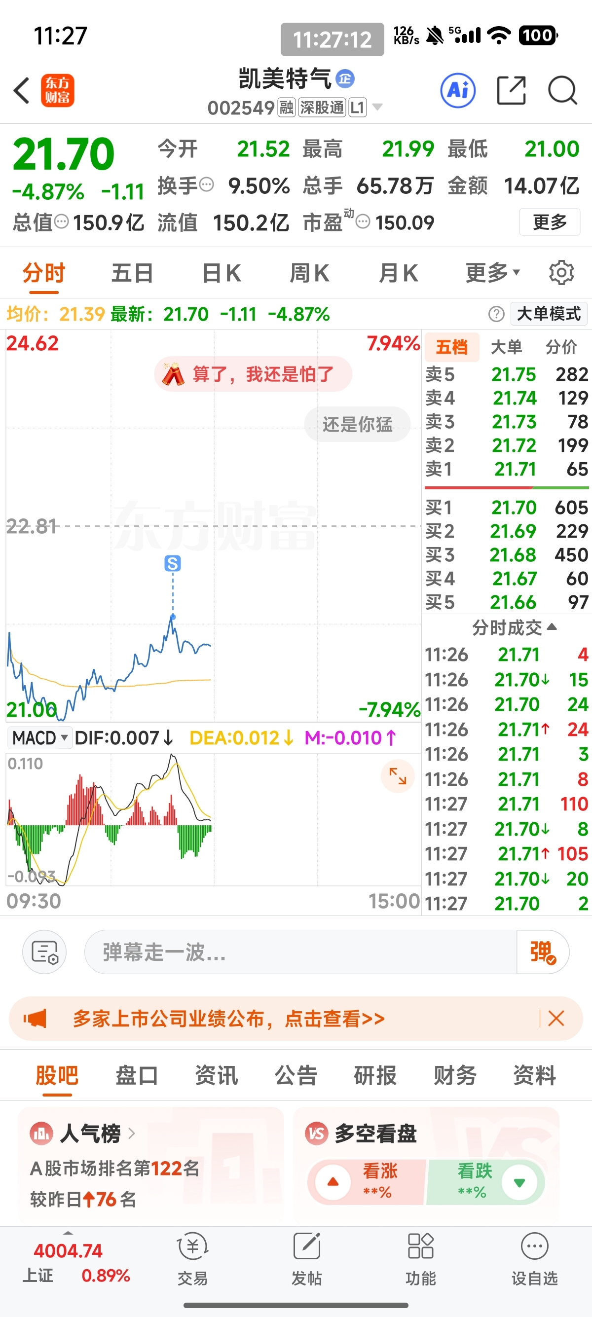 $凯美特气(SZ002549)$ 我卖了 ,希望还能做t把今天成本做回来