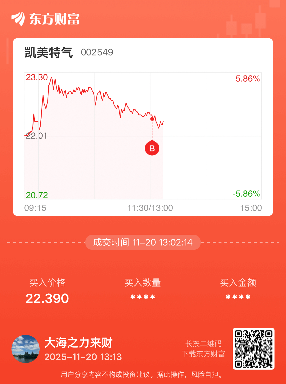 郑重声明:用户在财富号/股吧/博客等社区发表的所有信息(包括但不限于文字、视频、音频、数据及图表)仅代表个人观点,与本网站立场无关,不对您构成任何投资建议,据此操作风险自担。请勿相信代客理财、免费荐股和炒股培训等宣传内容,远离非法证券活动。请勿添加发言用户的手机号码、公众号、微博、微信及QQ等信息,谨防上当受骗!