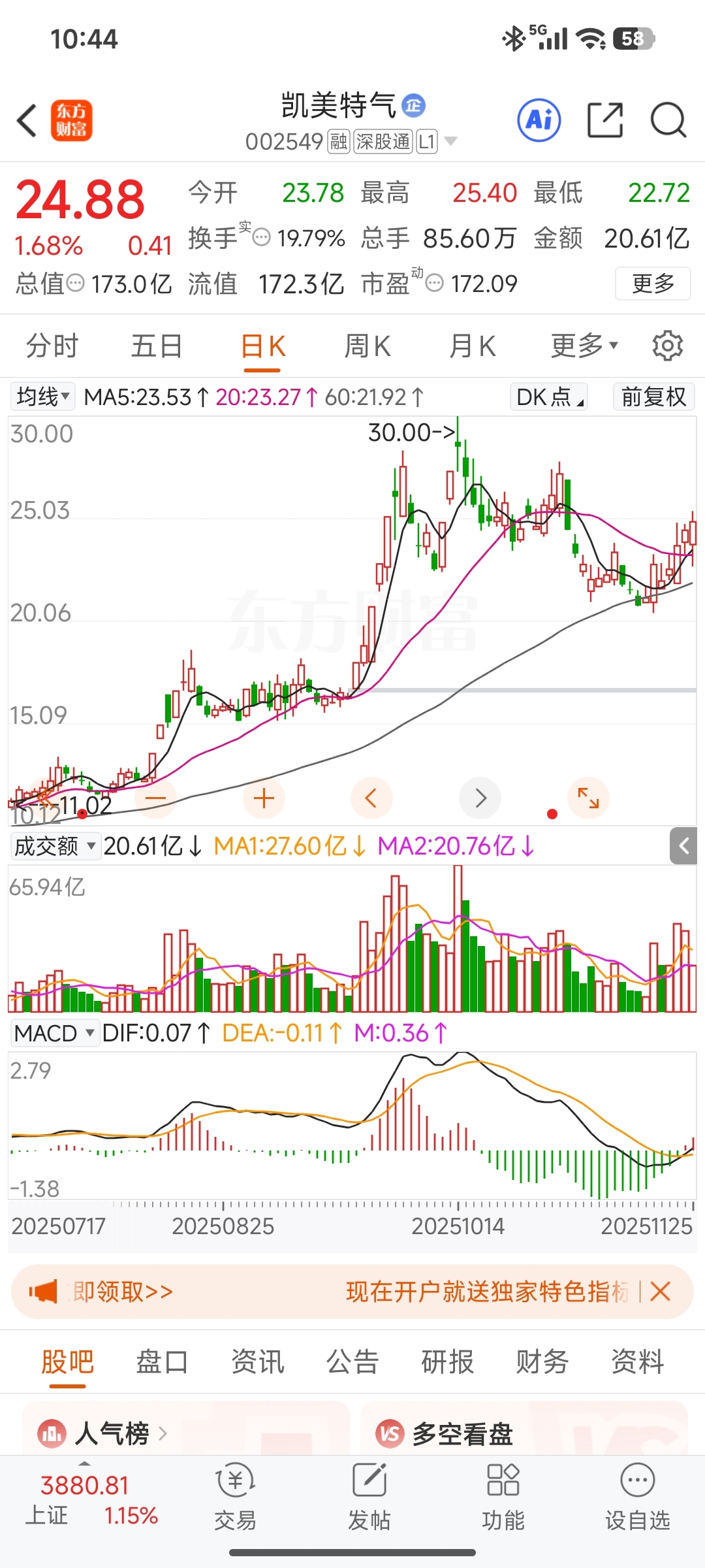 $凯美特气(SZ002549)$ 看他金叉买的,不知道对不对。。。