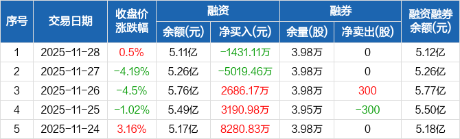 凯美特气:融资净偿还1431.11万元,融资余额5.11亿元(11-28)