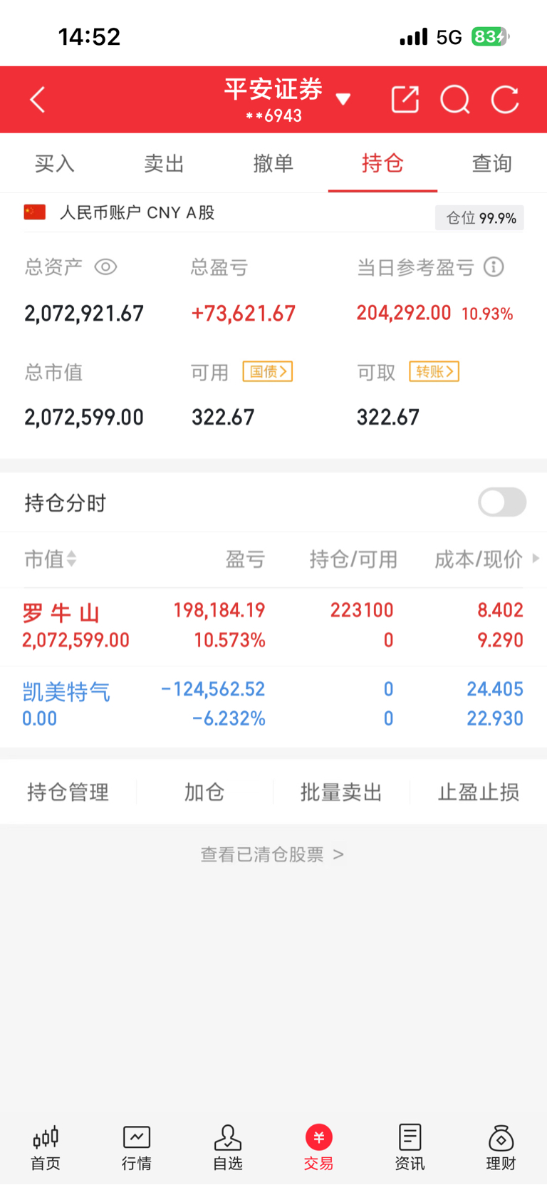 $凯美特气(SZ002549)$ 转场了,还没点关注的点个关注哦,目前新进$罗 牛 山(SZ000735)$ ,我说过,最低16%以上