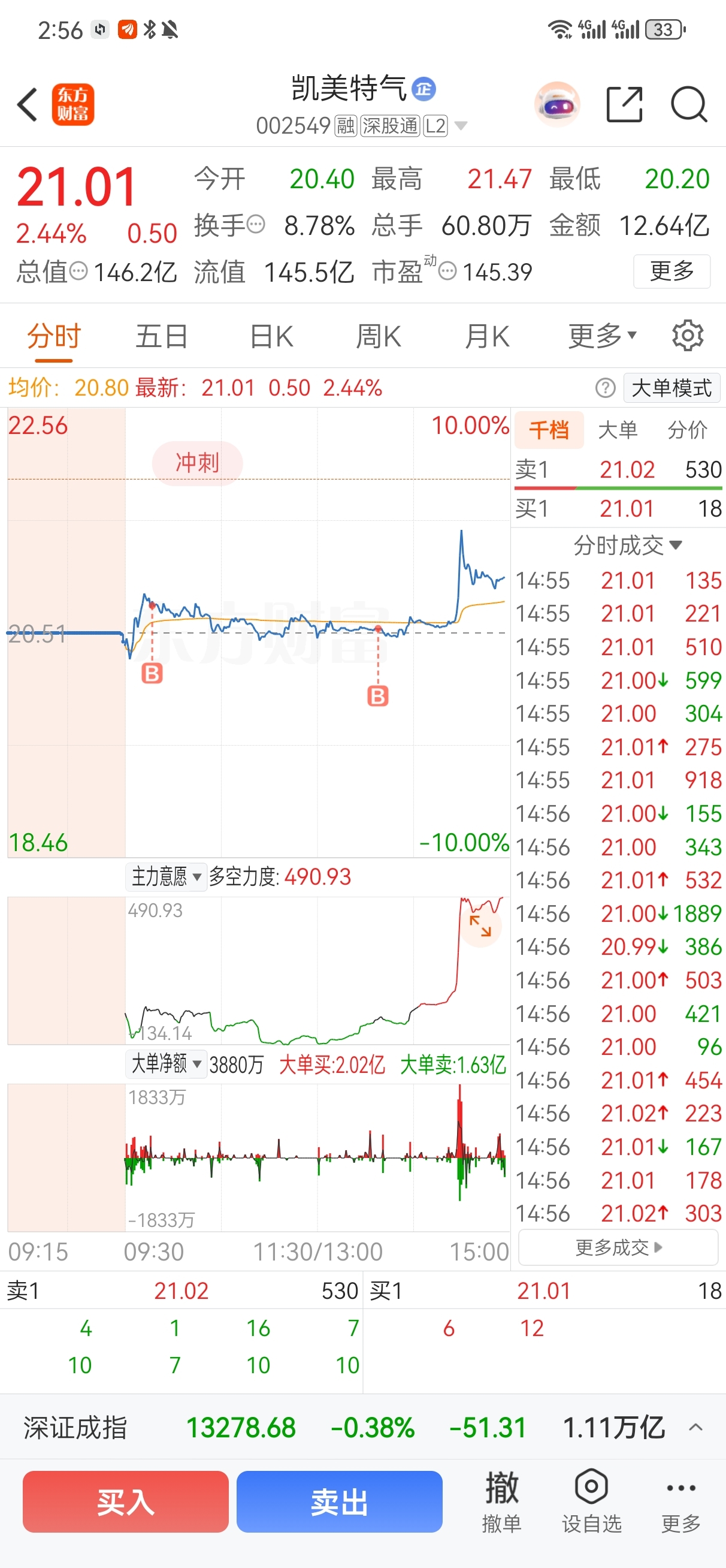 $凯美特气(SZ002549)$ 两点以为今天没表现了去睡觉了