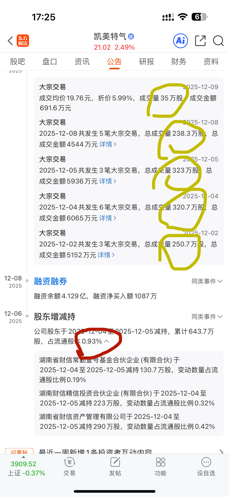$凯美特气(SZ002549)$ 集合竞价基本减持完毕。大宗减了1.68%,还有0.32%没减完。
