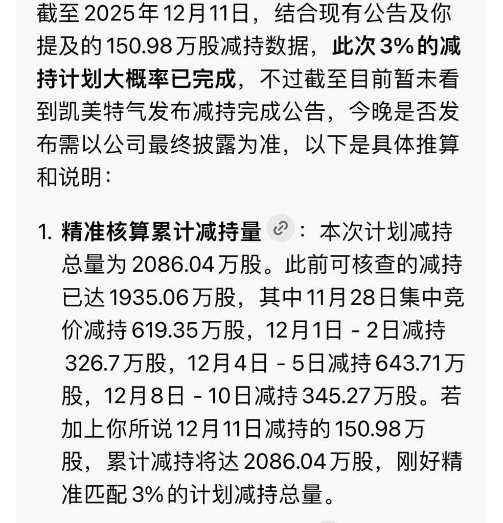 $凯美特气(SZ002549)$ 减持结束