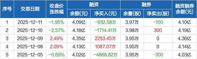 凯美特气:融资净偿还932.58万元,融资余额4.09亿元(12-11)