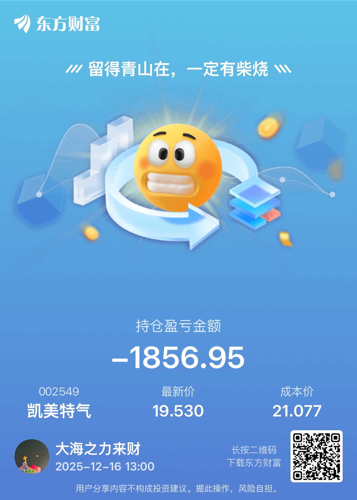 温馨提示: 1.根据《证券法》规定,禁止编造、传播虚假信息或者误导性信息,扰乱证券市场;2.用户在本社区发表的所有资料、言论等仅代表个人观点,与本网站立场无关,不对您构成任何投资建议。用户应基于自己的独立判断,自行决定证券投资并承担相应风险。《东方财富社区管理规定》