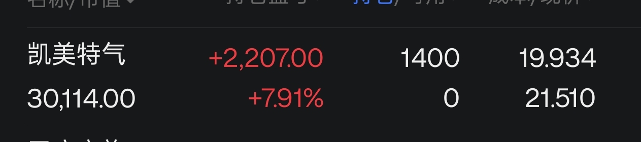 $凯美特气(SZ002549)$ 我这算是掏上了吗,昨天水下进的