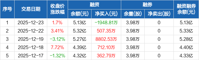 凯美特气:融资净偿还1948.81万元,融资余额5.13亿元(12-23)