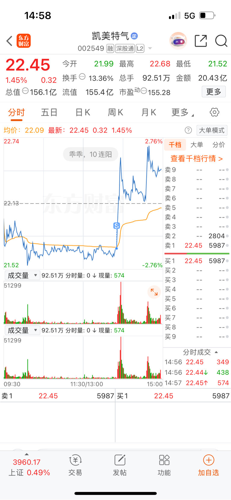 $凯美特气(SZ002549)$ 这主力就瞄到我了