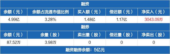 凯美特气:融资净买入3043.09万元,融资余额4.99亿元(01-05)
