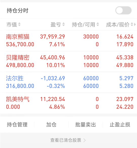 1.8实盘记录,凯美特气出,进南京熊猫,贝隆精密,法尔胜继续待着不动