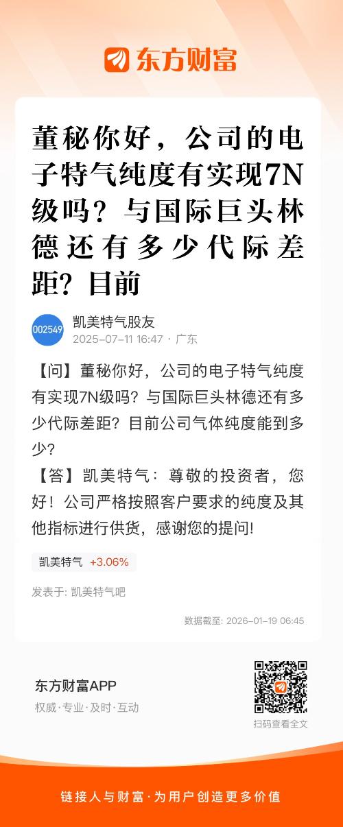 董秘你好,公司的电子特气纯度有实现7N级吗?与国际巨头林德还有多少代际差距?目前公司气体纯度能到多少?