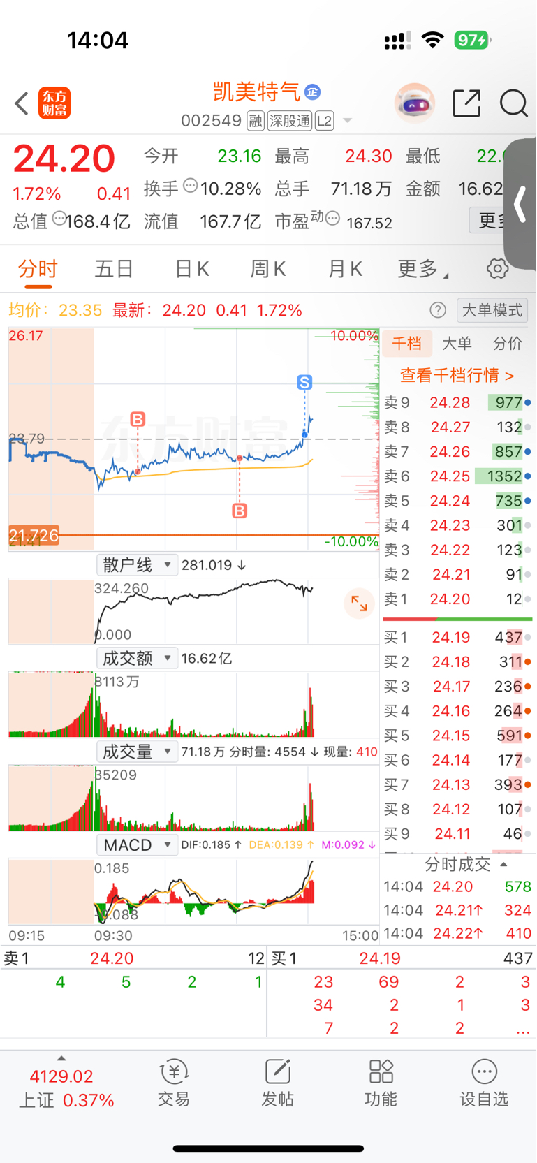 $凯美特气(SZ002549)$ 没办法,只能T着走,卖早了点