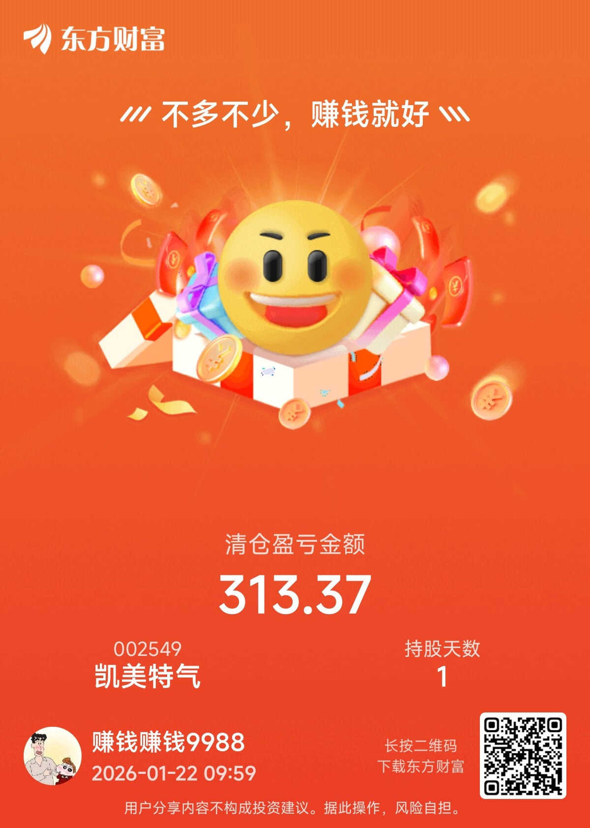 $凯美特气(SZ002549)$ 买了300股,还不错