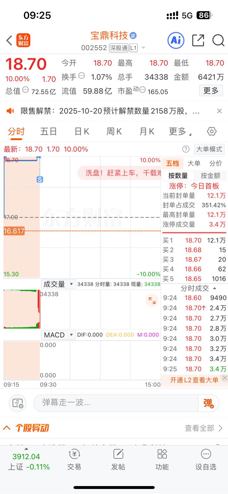 $宝鼎科技(SZ002552)$ 我是不相信真的精确,我一个人我刚刚24分30秒,我看没有一致吧,我就直接走了,没想到他刚卖他就来个10万手。