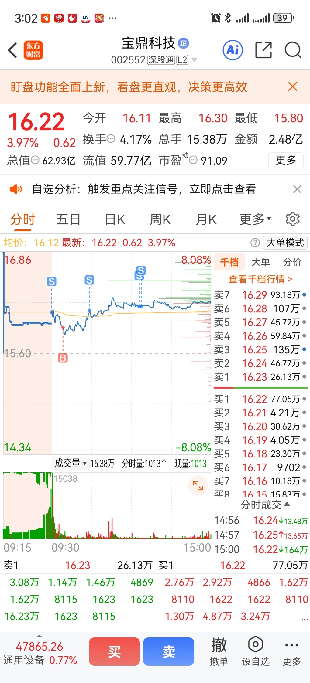 $宝鼎科技(SZ002552)$