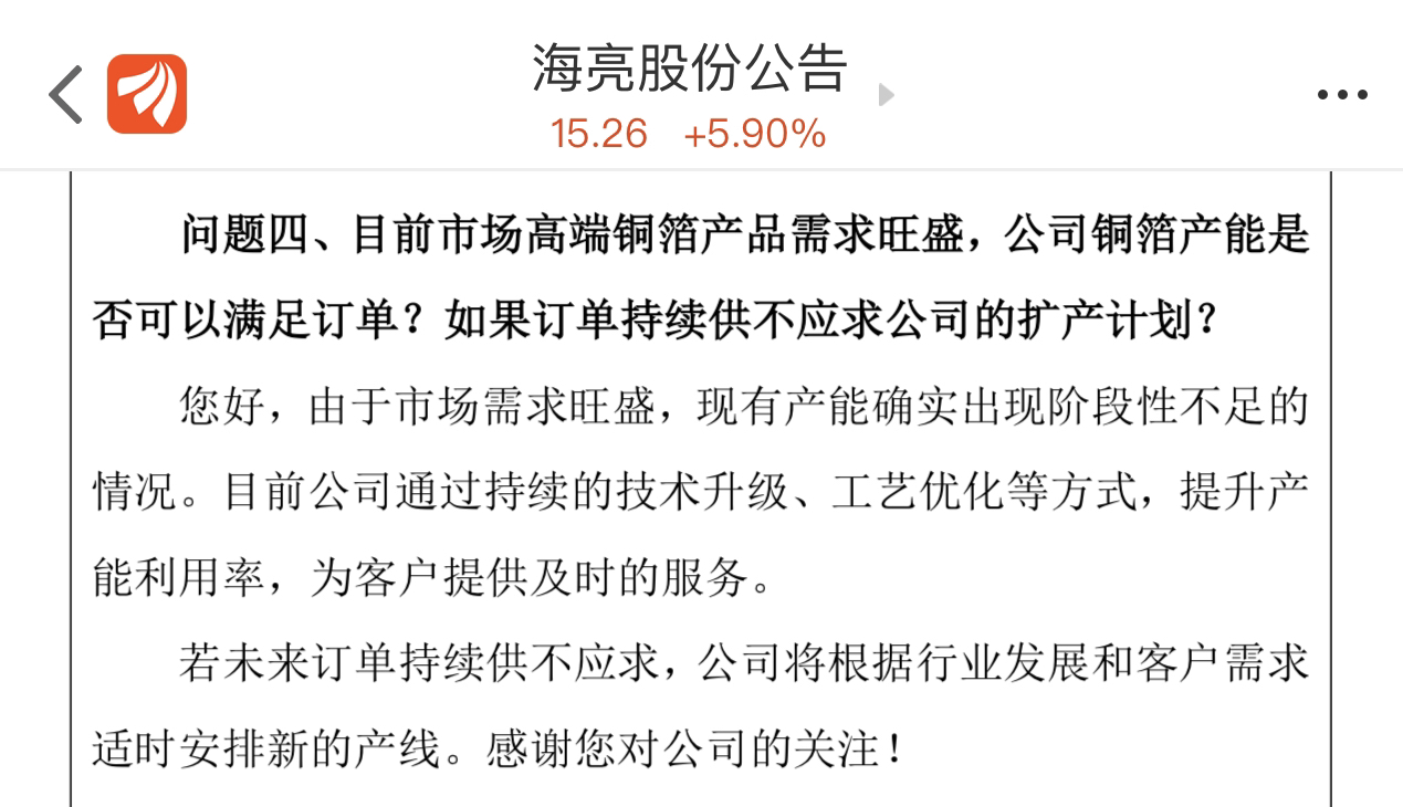 刚从海亮股吧回来,今年中高端铜箔确实需求激增、产销旺盛,在AIDC和次高端PCB