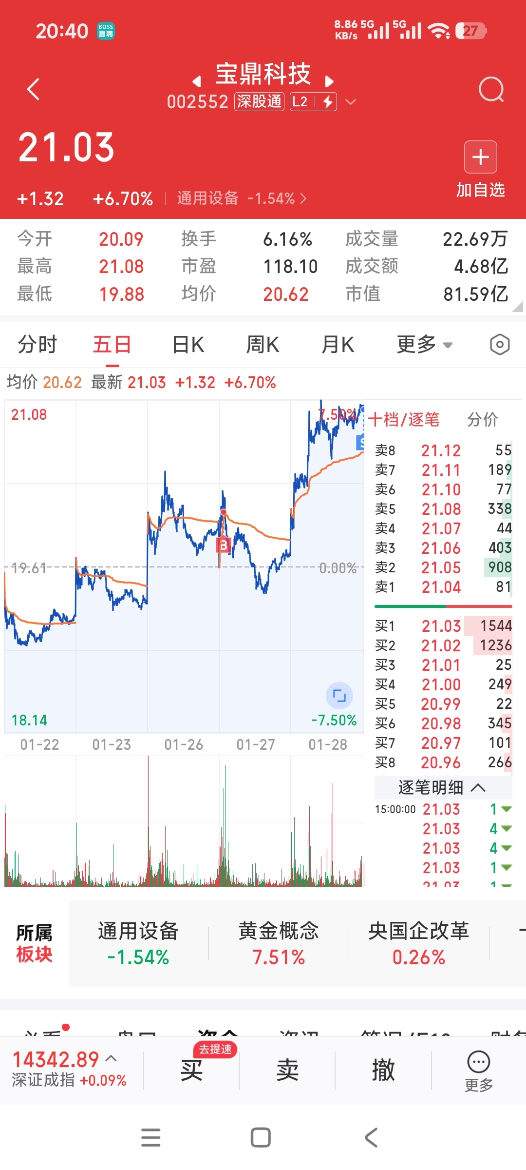 $宝鼎科技(SZ002552)$ 我尾盘走了,总是感觉就今天这行情都不封板,指定憋着坏呢。
