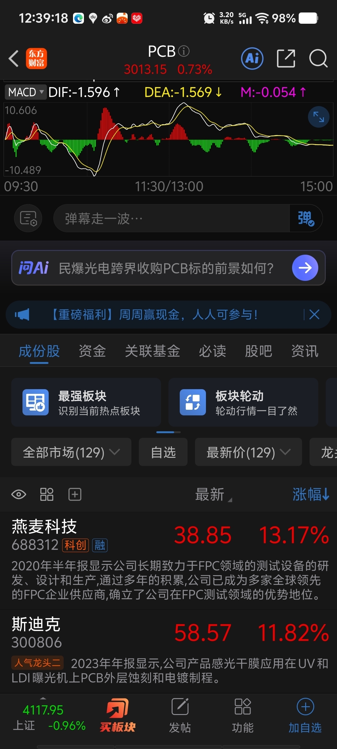 pcb概念周五已经先行起飞,受金价板块影响,蹭金价概念告一段落。今天跌停板被洗掉