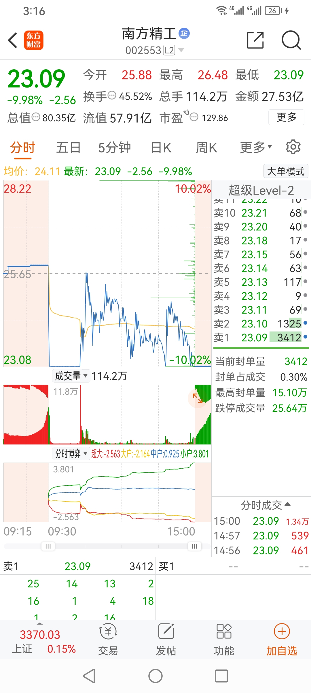 $南方精工(SZ002553)$ 军哥,今天集合竞价,割股,砸盘。#炒股日记#