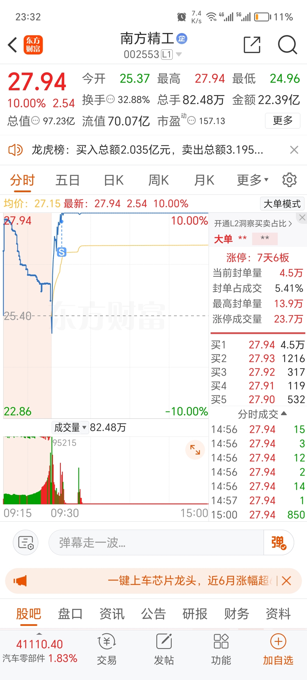 $南方精工(SZ002553)$ 每天都炸板,34%利润落袋为安了,我这小心脏受不了了。希望留在里面的家人继续好运