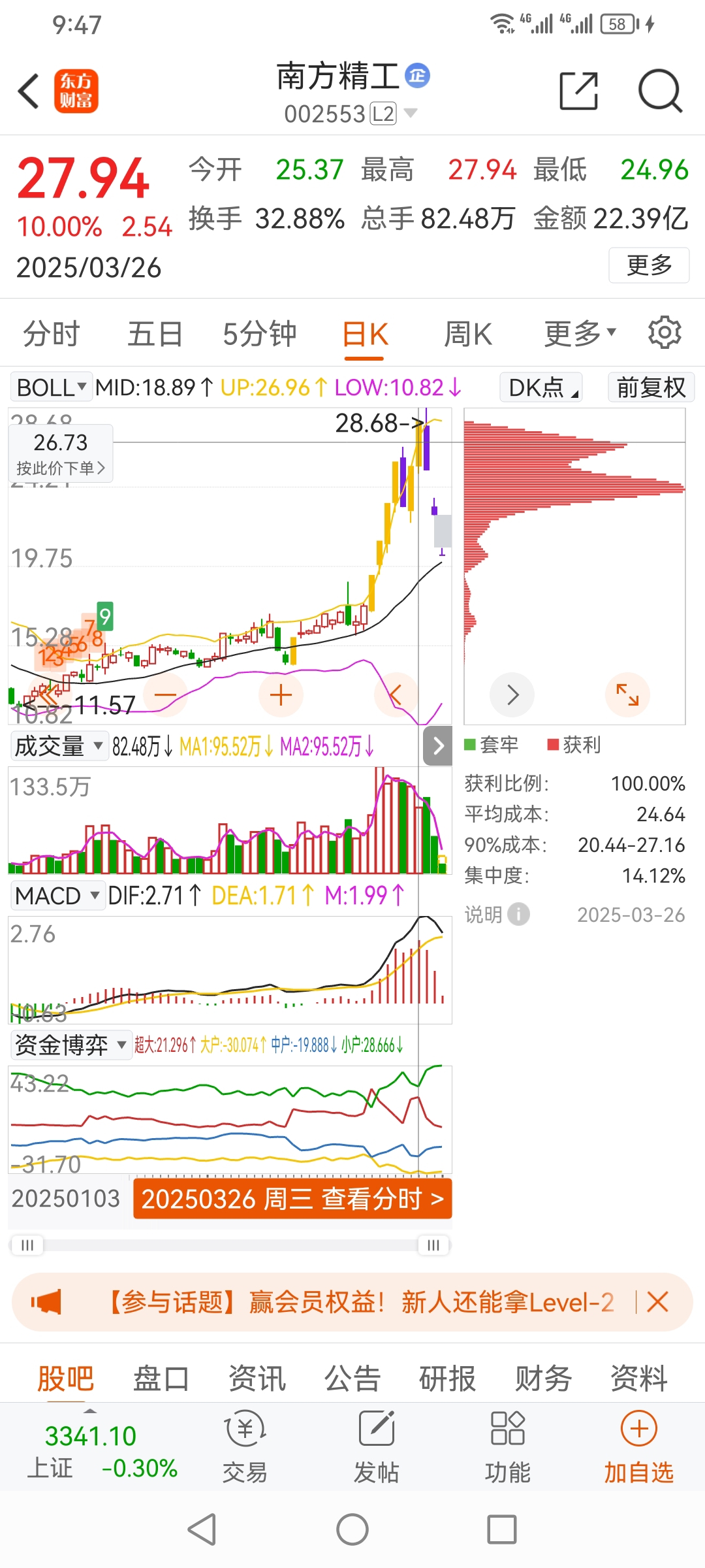$南方精工(SZ002553)$ 军哥,跌停板基因,出现,就是继续下跌,跌停板#炒股日记#