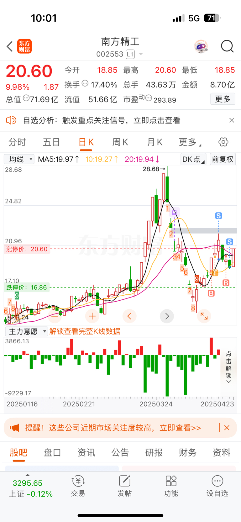 $南方精工(SZ002553)$ 下次我卖了给大家说,大家无脑冲就行了