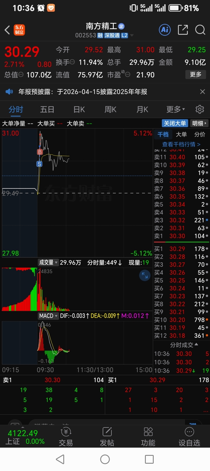 $南方精工(SZ002553)$ 三个多点卖了,看着又拉快五个点又追进去,真是恶心