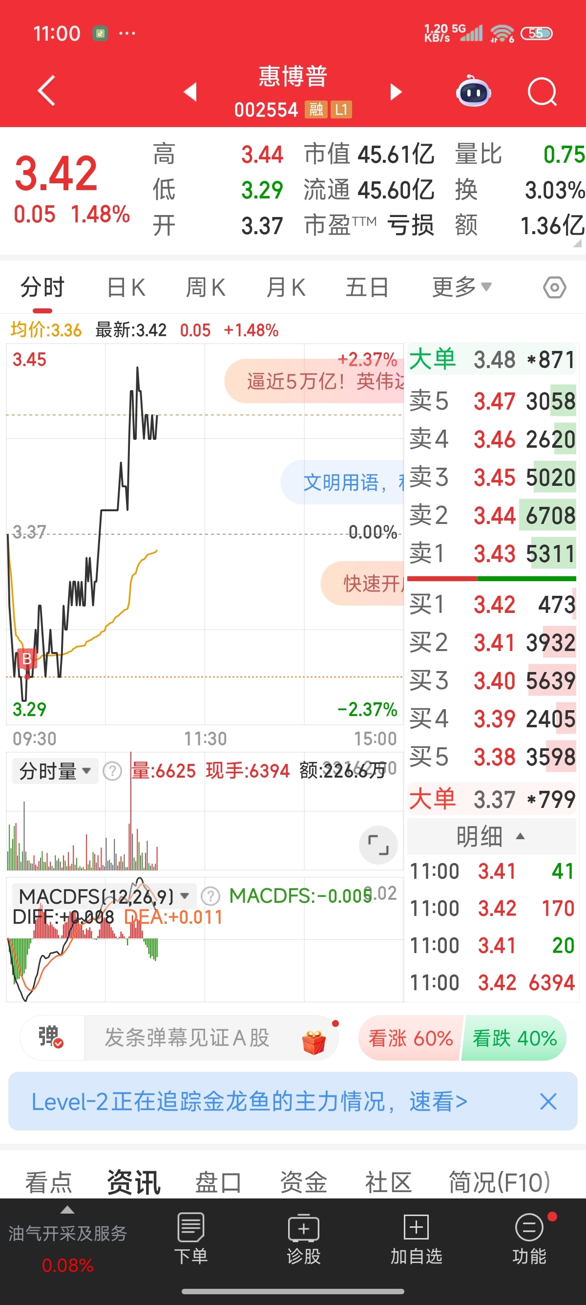 $惠博普(SZ002554)$ 开盘买了一丢丢惠博普,仓位很低。