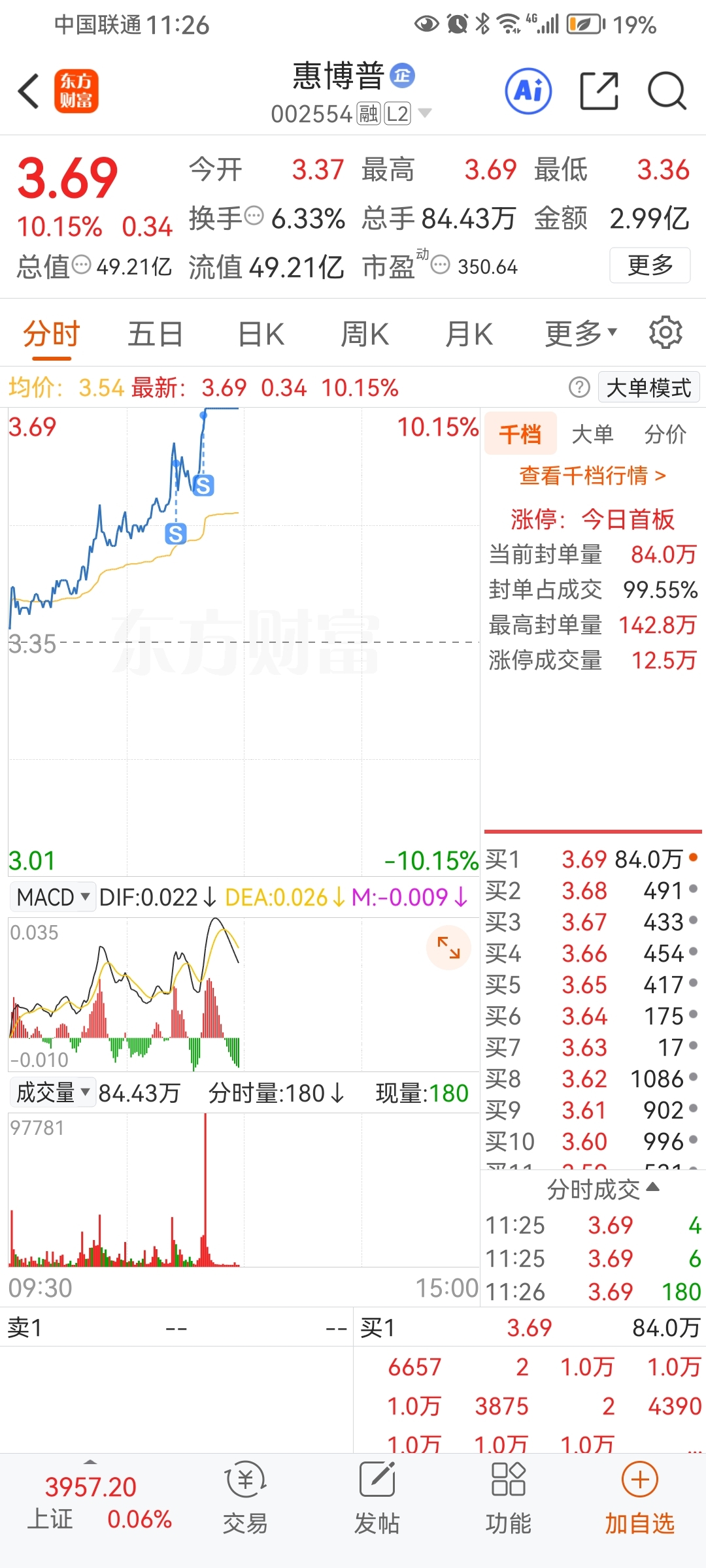 $惠博普(SZ002554)$ 感谢主力让我解套