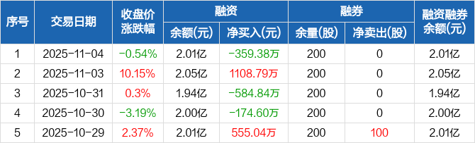 惠博普:融资净偿还359.38万元,融资余额2.01亿元(11-04)