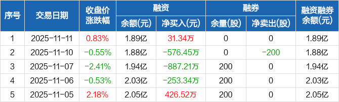 惠博普:融资净买入31.34万元,融资余额1.89亿元(11-11)